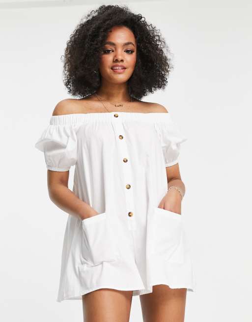 Mono corto blanco con vuelo botones y escote Bardot de ASOS DESIGN ASOS Very well made.